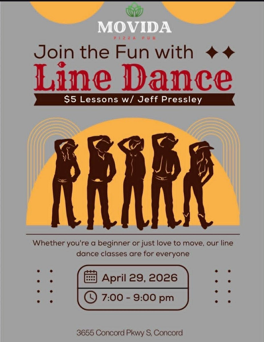 ATTENTION...... Y'all asked we Delivered...Join us for a New beginner line dance class in Concord.. Every other Wednesday starting April 29 2026... Come out early eat some great food and drinks. And learn some line dances.. Can't wait to see everyone there..